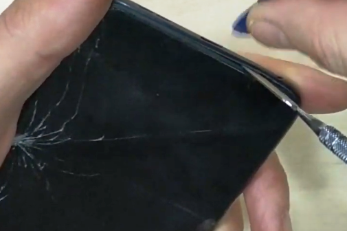 Если стекло разбито, то в первую очередь вскрываем целые края, чтобы не поранить пальцы осколками. Также для дополнительной безопасности, чтобы поменять дисплеи на Асус ZB602KL можно работать в защитных перчатках. Раскрывать смартфон следует по направления сверху вниз.